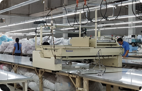| 생산설비현황 | 사절본봉, 1~2본오버록, 스소전용, 후랏또(오드람프), 평2*3본, 랍바전용, 쟈메스2본, 레이스달이, 지그재그(지도리), 바텍(간도메), 엔드레스, 스판달이, 피콧, 단추구멍, 메로(날라리) 인밴드오버록, 인밴드2본침누르기전용, 상하차동, 검단기, 검침기, 슈퍼롤, 튜브/광폭연단기, 밴드나이프, 캐드플로터 |